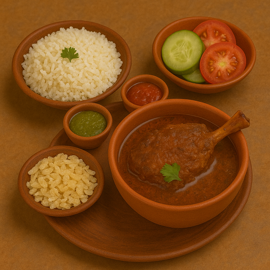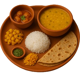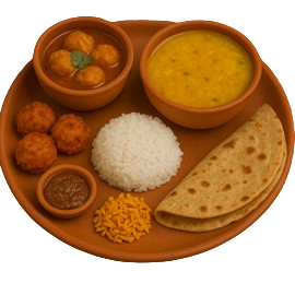 Gatta cury, arhar dal, aloo bhujia, rice & rati se...