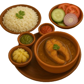 Besan sabzi, arhar dal, aloo bhujia, piyazi, rice,...